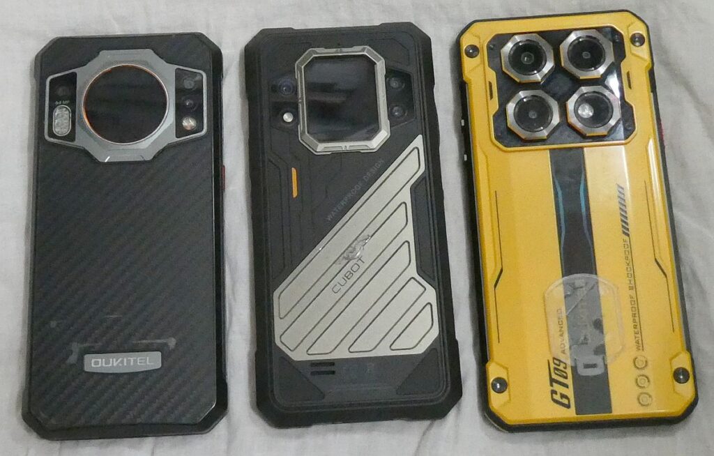 左からOUKITEL WP21、Cubot KingKong X Pro、OUKITEL WP21