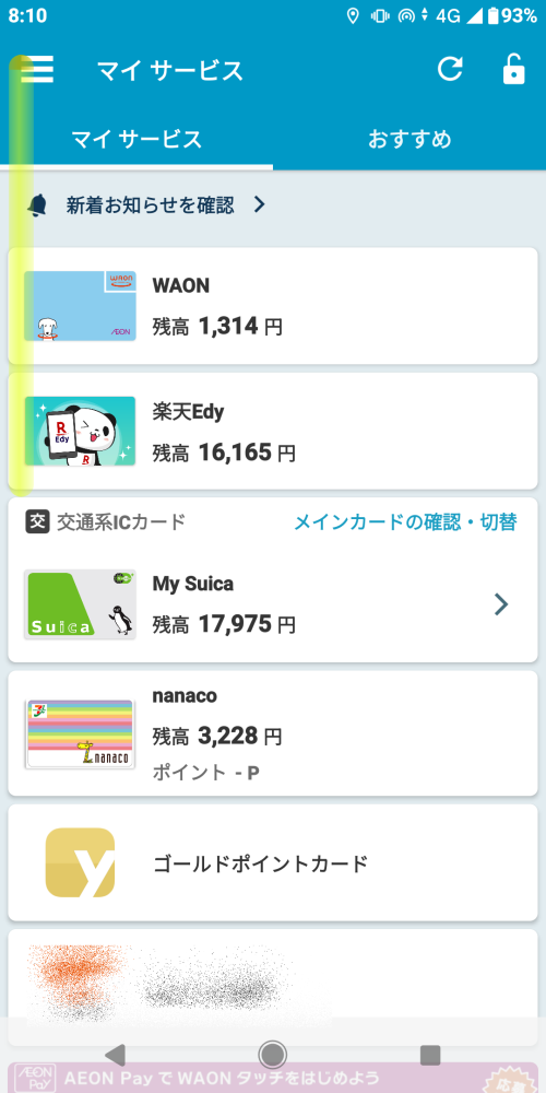理由:おサイフケータイ導入時に導入したWAONとNANACOだが、近年までほとんど使っていなかった。よって残額も2~3000円しか入れていなかった。自分の経験上「優先上位のEdy、Suica、paypayのどれもが使えずに、WAONやNANACOは使える」という店は出会った記憶が無く、使う必要性を感じなかった。精算する機会がなく今に至っている。