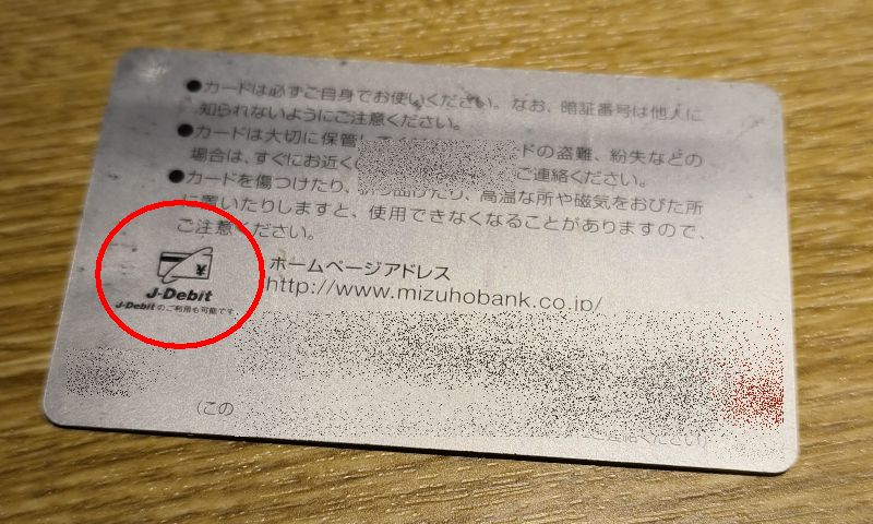 銀行のキャッシュカードの裏に示されたJ-Debitのマーク。過去、使ったこともあったかもしれない。
