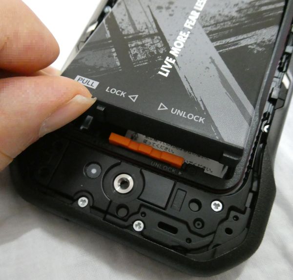 前機種TORQUE G06 KYG03の時から、また購入理由記事記事でも主張しているように、本機種を自分が買うのは交換可能バッテリーだからである。よってレビューの筆頭も当然その点になる。