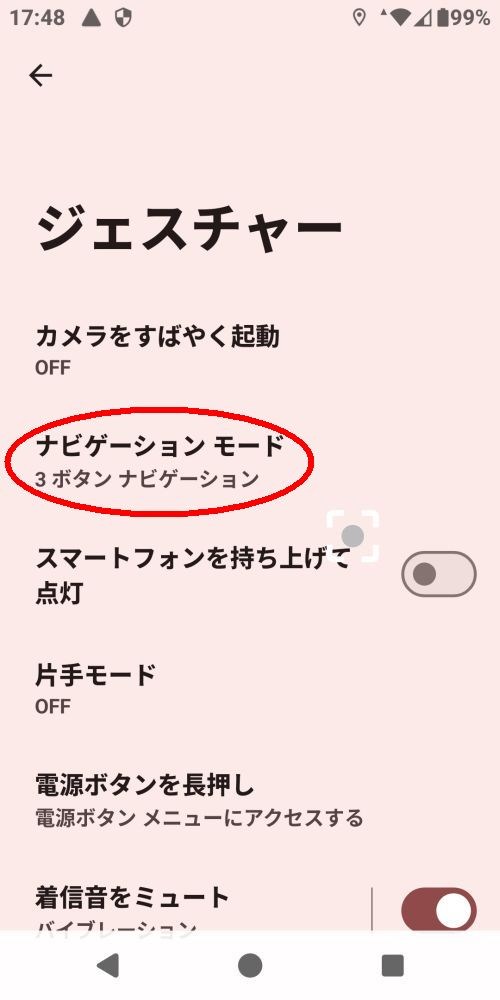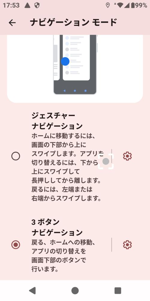 4.2●「ジェスチャーナビゲーション」→「3ボタンナビゲーション」(ナビゲーションバー)