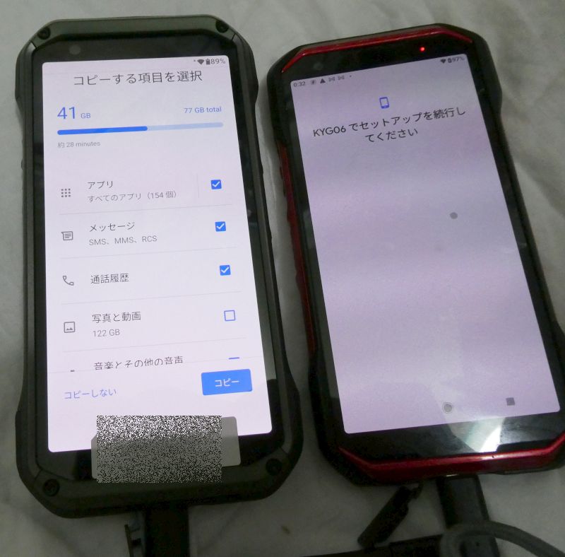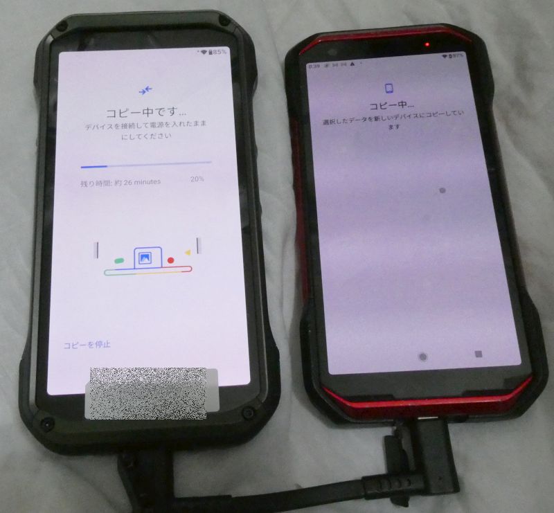 - USBケーブルで新旧スマホ接続によるデータ移行