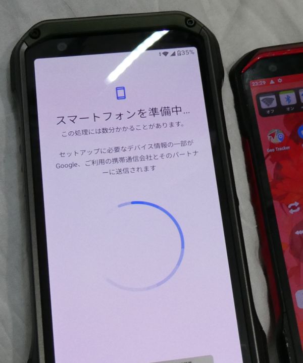 ・開始方法は購入したばかりのスマホを起動すると、設定が始まり、やがてデータ移行の操作になる。(冒頭の写真が初めての起動直後のもの。)